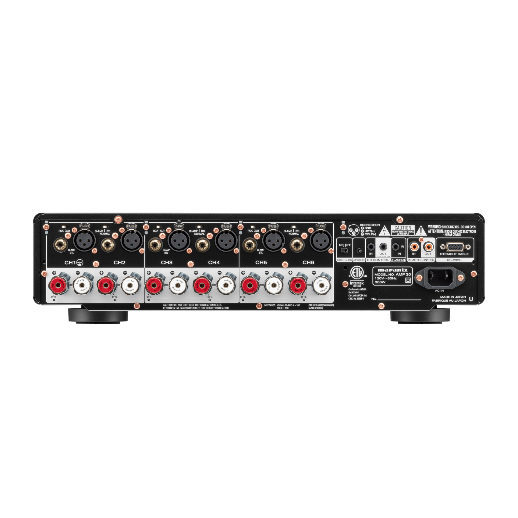 AMP 30 is a remarkably powerful, slimline 6-channel amplifier that can be paired with an AV preamplifier for an outstanding home theater system. AMP 30 is rated at 200 watts per channel into 8 ohms and 400 watts per channel into 4 ohms, and is built on Marantz’s exclusive HDAM and high-efficiency low-distortion Class D amplification. Combine with additional AMP 30, AMP 20 or AMP 10 power amplifiers to drive more complex speaker configurations.