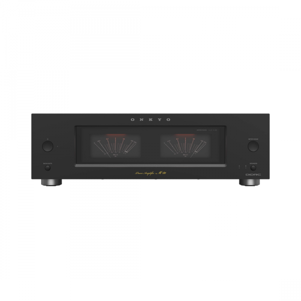 The Onkyo M-80 Power Amplifier features custom high current power supply to provide, dynamic full-range sound, and an extrusion aluminum heat sink that suppresses vibration. The addition of high-quality 10000uF capacitors custom-made exclusively for Onkyo, Hi-Fi grade terminals (both speaker output and audio input terminals), copper bus bars, and a robust vibration-proof front panel ensure powerful, world-class playback.