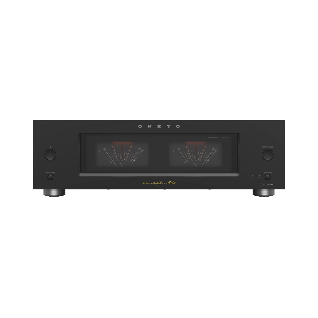 The Onkyo M-80 Power Amplifier uses a three-stage Inverted Darlington Amplifier. This three-stage Inverted Darlington Amplifier has a very low output impedance and powerfully drives speakers with a large current. Additionally, by keeping NFB (negative feedback) low, it’s not affected by extra noise from the speaker, offering a powerful yet highly resolving and informative sound. The M-80’s output stage transistors are in parallel configuration, providing excellent instantaneous current supply capability, further enhancing the rise of sound and the sense of power. The driver stage of the M-80 amplifier uses DIDRC (Dynamic Intermodulation Distortion Reduction Circuitry) which reduces noise in the ultra-high frequency band with DIDRC’s High Slew Rate Design and helps produce the natural sound of an analog record.