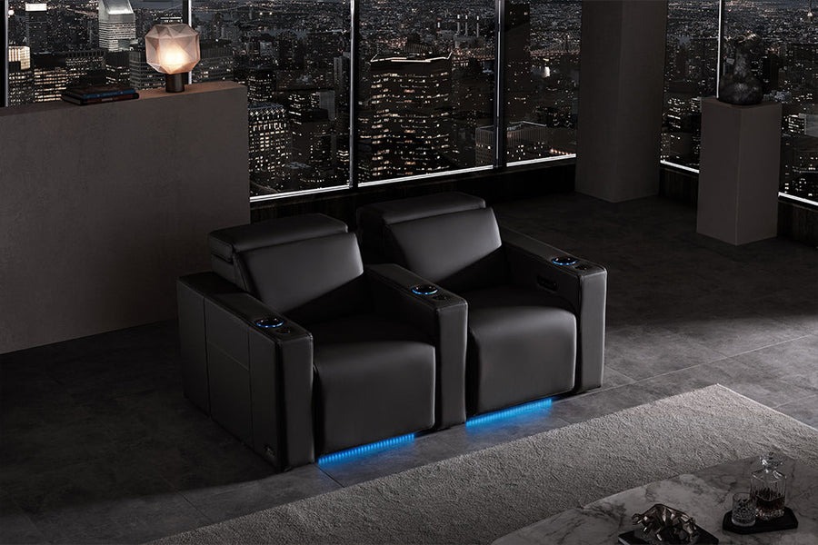 The wall hugging recliner mechanism allows you to fully recline while keeping the seats close to the wall. This design saves the unnecessary space behind the seat to maximize the usage of your home theater.