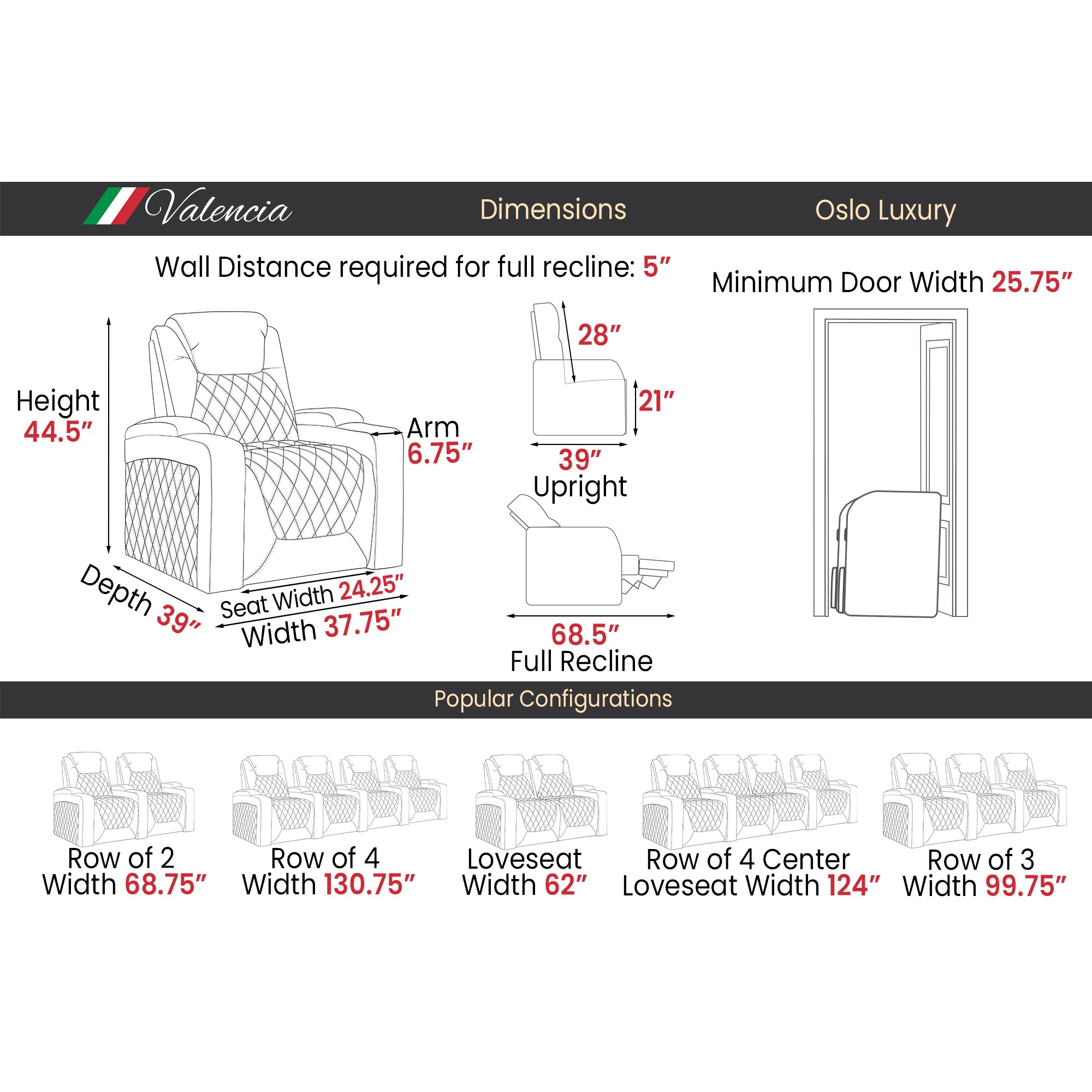 I bought the Valencia 3 seater, home theatre seats. They are well built and extremely comfortable. Highly recommend them.