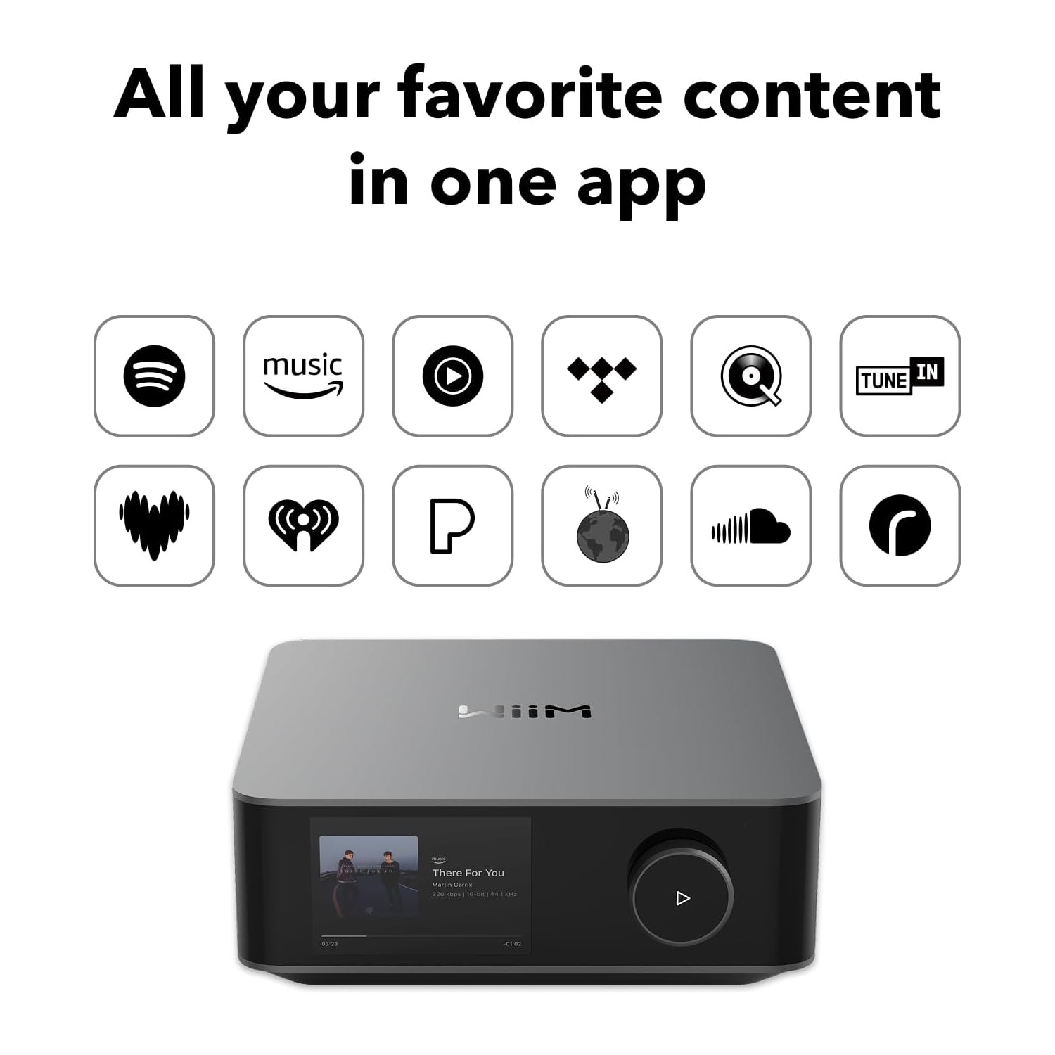 Designed to stand out and fit in, the Amp Ultra features a sleek unibody aluminum chassis and a vibrant 3.5” glass-covered touchscreen. Easily control playback, switch sources, view album art, and more—all at your fingertips.