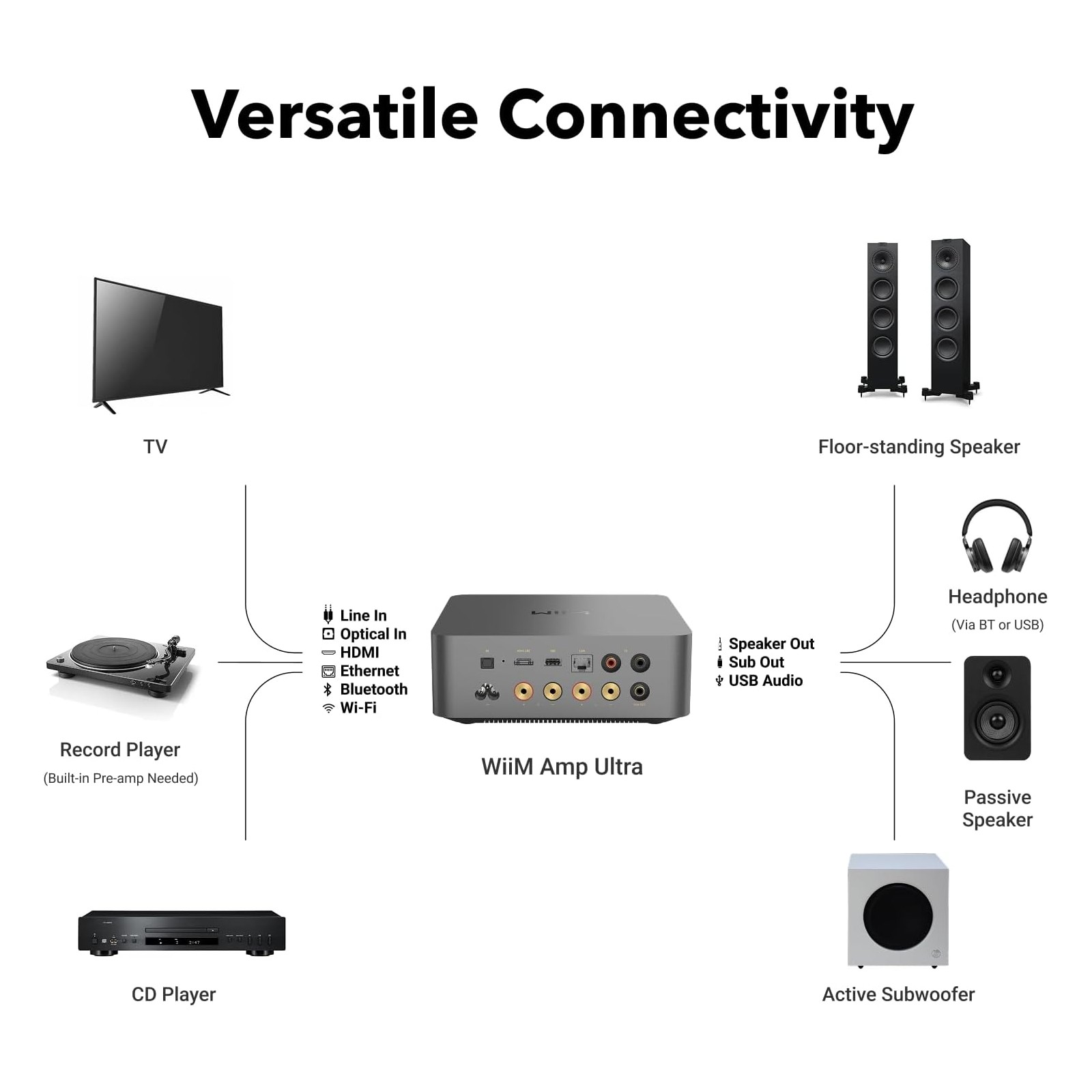 Meet the WiiM Amp Ultra – our most powerful streaming amp yet. Delivering 100W per channel at 8Ω with ultra-low distortion, it brings rich, high-fidelity sound to everything from vinyl to Spotify to cinematic TV audio—perfect for audiophiles, home theater enthusiasts, and smart home setups.
